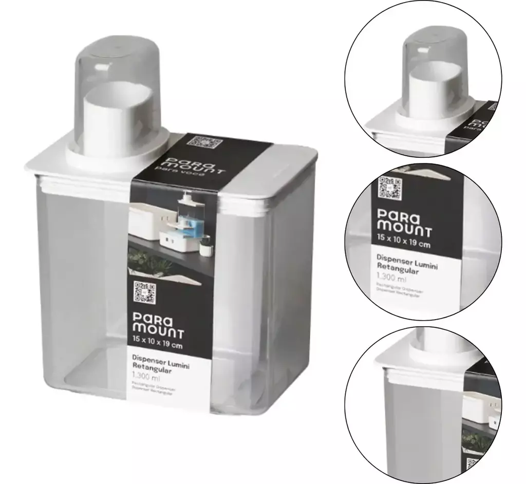 Com formato retangular compacto e capacidade de 1,3 litros, é perfeito para guardar produtos de limpeza ou farinhas/farofas.